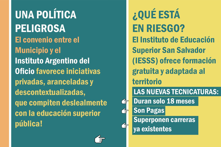 Algunas de ellas incluso se superponen con las propuestas del IESSS, generando una competencia desleal. Mientras el instituto público debe sostenerse con recursos propios y sin el acompañamiento municipal, las tecnicaturas privadas cuentan con apoyo institucional, infraestructura estatal y promoción oficial.