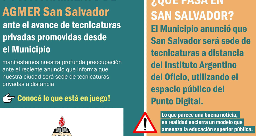 POSICIONAMIENTO DE AGMER SAN SALVADOR ANTE EL AVANCE DE TECNICATURAS PRIVADAS PROMOVIDAS DESDE EL MUNICIPIO