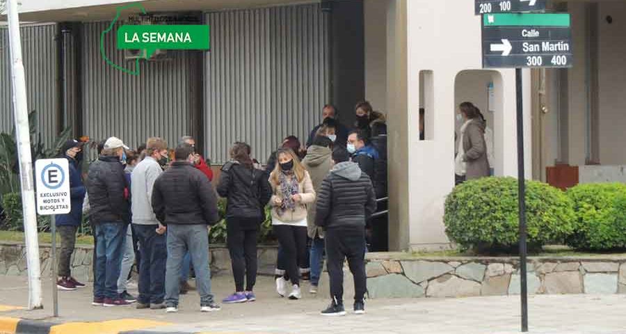 En la puerta del municipio se pudo observar a una treintena de comerciantes preocupados por la inactividad que tendrán la semana que viene, que esperaron afuera, hasta que terminó el cónclave de los representantes con el intendente Larrarte.