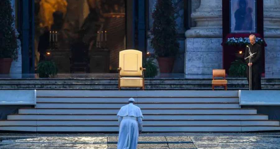 Nunca antes en la historia bimilenaria de la Iglesia se vieron imágenes tan sobrecogedoras como las de hoy. Con un papa que, en solitario, en una plaza San Pedro totalmente vacía, imploró a Dios liberar a la humanidad de las «densas tinieblas» causadas por la pandemia del coronavirus y que con una «bendición urbi et orbi » otorgó la indulgencia plenaria, es decir, el perdón de los pecados a los más de 1300 millones de católicos del mundo.
