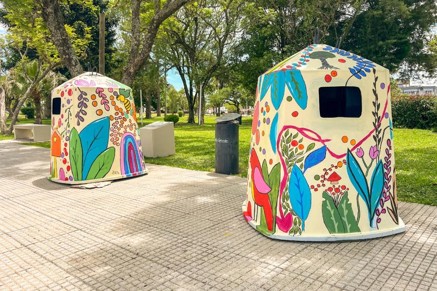 Alumnos de las escuelas N°2 “Francisco Ramírez”, N°4 “Bicentenario de la Patria” y del Colegio Luterano “El Redentor”, junto al artista local Francisco Menescardi, llenaron de color los contenedores que pronto formarán parte de la campaña de recolección de plásticos.