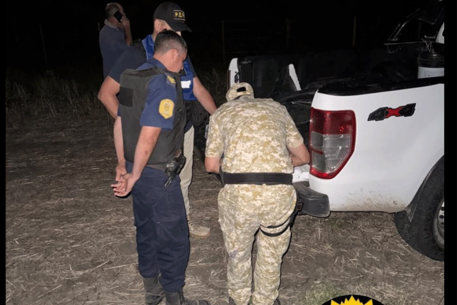 La oscuridad no fue impedimento para los efectivos. Utilizando visores nocturnos de alta precisión, las patrullas rastrearon el origen de los disparos hasta que las siluetas delataron al infractor: un hombre de 50 años oculto junto a una camioneta Ford Ranger 4×4 en medio del campo.
