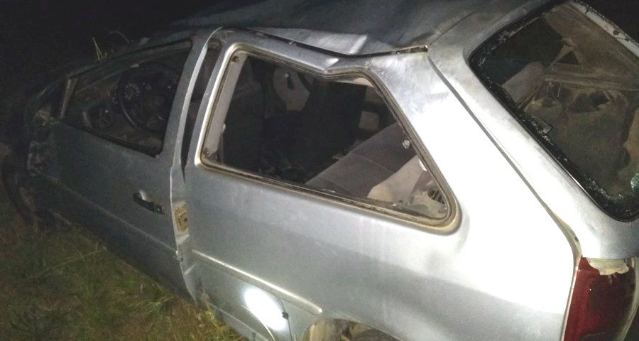 Al llegar personal policial pudo comprobar el vuelco de un vehículo marca Volkswagen Gol Power de color, gris tres puertas.