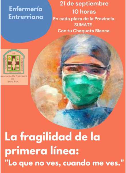 Al conmemorarse el próximo lunes 21 de septiembre el Día de la Sanidad, Ana Berejano –jefa de Enfermería de Sanatorio La Entrerriana de Paraná- anunció que “no será un día de festejo sino de movilización y duelo por los compañeros que hemos perdido y por los que hoy, en nuestra ciudad, estamos cuidando en las unidades de cuidados intensivos. La imagen de la enfermería es haciendo silencio, pero creemos que no es salud para nosotros”.“Bajo el lema Lo que no ven cuando nos ven decidimos movilizarnos para mostrar todo lo que hay detrás de un enfermero: una ley de Enfermería que tiene media sanción y todavía no salió, una falta de reconocimiento a las especialidades, que no somos declarados como personal de tareas insalubres, hay licencias profilácticas que no existen desde marzo”, expresó Berejano.