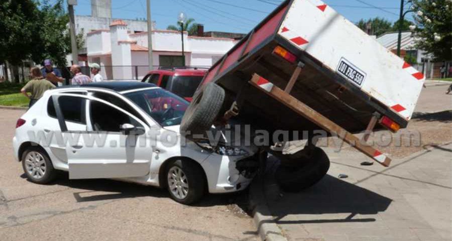 En horas del mediodía de este jueves y por razones que se tratan de establecer se produjo una espectacular colisión en la intersección de las Calles Saavedra y Perón de Villaguay, sin tener que lamentar personas heridas, solamente daños materiales.