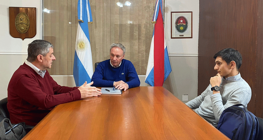 Acompañaron al Intendente el Secretario de Obras y Servicios Públicos, Ing. Gino Grimaldi, y el MMO Brian Ríos, quienes además presentaron un proyecto de mejoras edilicias para una institución educativa local, solicitando también apoyo técnico para su realización.
