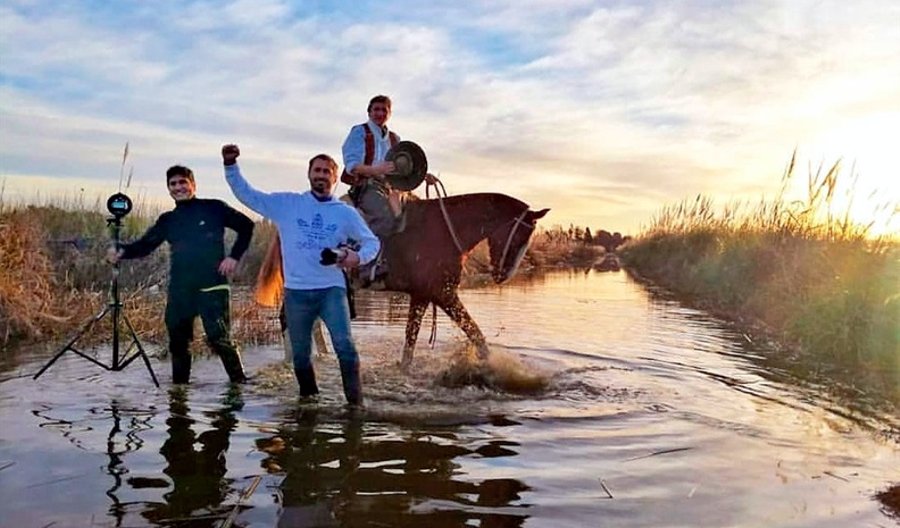 “Pensamos previamente cada detalle. En qué lugar me iba a reflejar el agua y en qué dirección poner el caballo. Particularmente, me interesaba que el caballo tuviera las cuatro patas blancas, porque al estar oscuro necesitaba que las patas se perdieran en el agua y un caballo oscuro hubiera perdido esa sensación”, relata Nacho.