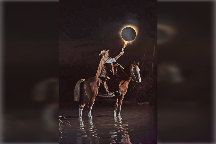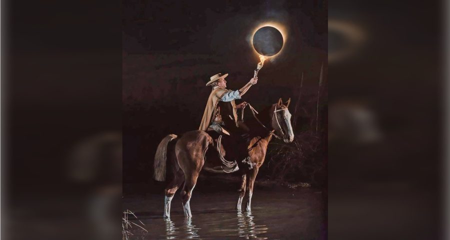 “Queríamos lograr algo distinto, artesanal, artístico, y cómo el eje de la visualización era esta región de la Argentina, decidimos que sea desde el punto de vista representativo de lo criollo”, explica a Puntal Nacho Baggini, uno de los promotores de la puesta en escena y protagonista de la foto de “El gaucho con antorcha que enciende el eclipse”.