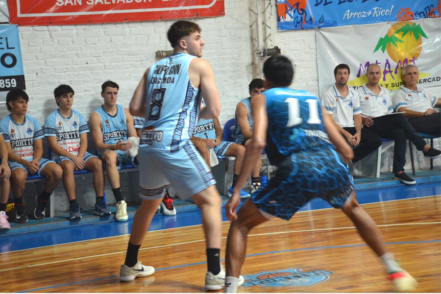 Promediando el segundo cuarto, la visita logró una diferencia de 10 puntos (24-34) tras el cuarto triple de Nieto. A Sportivo le costaba frenar la precisión de su rival desde el perímetro, hasta que el técnico realizó ajustes en la rotación y logró reducir la brecha. En ese tramo, la potencia de Dacunda en ambos tableros, sumada a la experiencia de Madera, resultó clave.