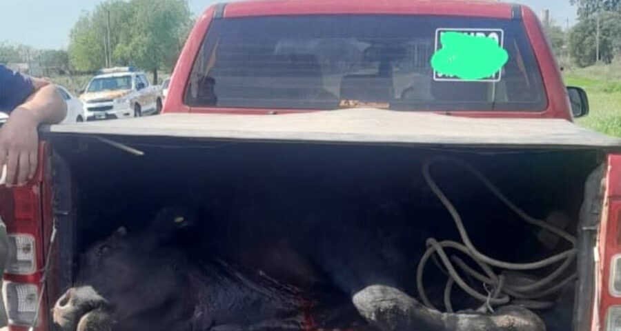 Durante el procedimiento, los efectivos notaron el nerviosismo del conductor, un hombre mayor de edad, y solicitaron la apertura del portón trasero de la caja de carga. Allí constataron que trasladaba un animal vacuno sin vida, degollado y con signos de haber sido faenado.