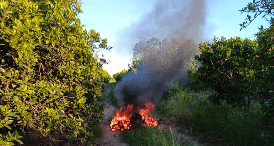 Un cuatriciclo se incendió por completo mientras circulaba dentro de una finca dedicada a la producción de cítricos, ubicada sobre el acceso principal a la localidad de Villa del Rosario, departamento Federación.