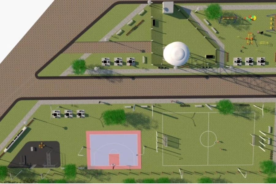 ⚽🏀 El primero será destinado a deportes. En el mismo se ubicará una cancha de fútbol 7, una cancha de básquet 3×3 y se dispondrá de equipamiento para realizar ejercicio al aire libre.