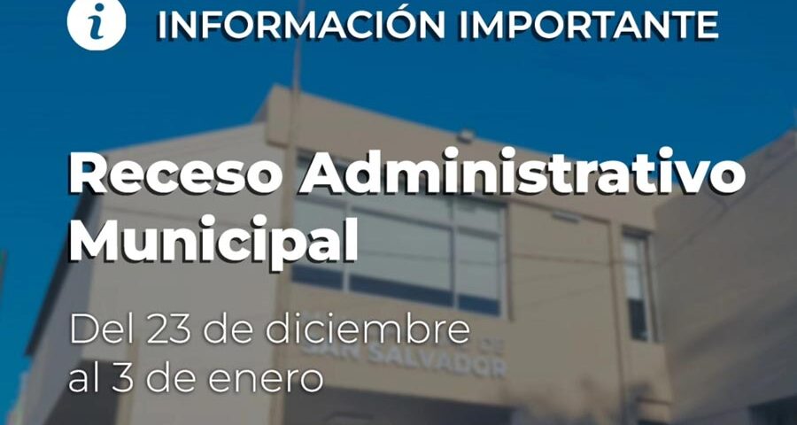 La Municipalidad de San Salvador informa sobre el receso administrativo y los servicios que se prestarán de manera restringido desde el 23 de diciembre al 3 de enero de 2025.