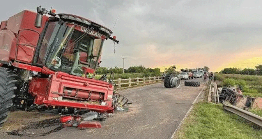 Por su parte, la cosechadora sufrió la pérdida de dos ruedas y quedó atravesada sobre una de las cabeceras del puente, obstruyendo completamente el paso vehicular en ambas direcciones.
