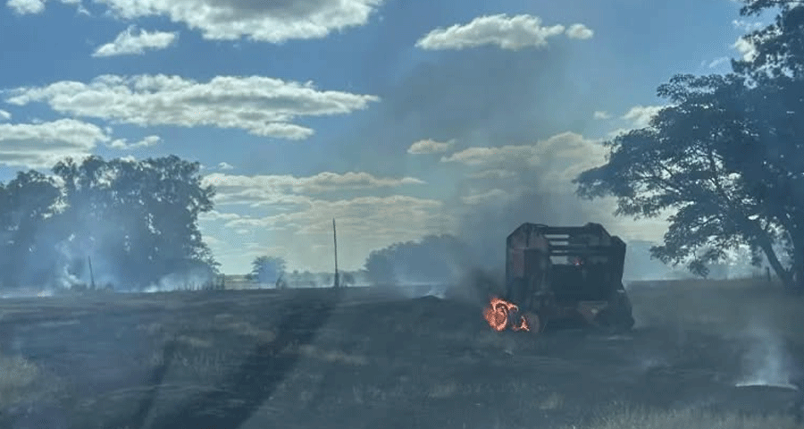 El llamado de alerta se recibió pasadas las 16:00 horas, informando sobre el incendio de una maquinaria en un campo ubicado en las cercanías de la ciudad.