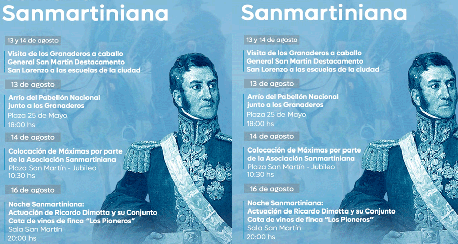 En el marco de los 175 años del fallecimiento del General Don José de San Martín, el Departamento de Cultura y Turismo, junto a la Asociación Cultural Sanmartiniana de San Salvador, invitan a toda la comunidad a participar de las actividades conmemorativas en honor al Padre de la Patria.