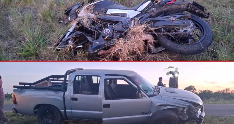 Cerca de las 19:00, un motociclista perdió la vida al colisionar de frente con una camioneta Chevrolet S10 que circulaba en sentido contrario.