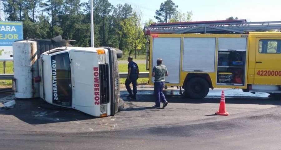 A las 9.25 horas de este miércoles un camión Ford 700 que pertenece a la flota del Cuerpo de Bomberos Voluntarios de la ciudad de Concordia volcó en una de las rotondas del cruce de las rutas Nacional 14- Autovía José Gervasio Artigas- y la ruta provincial 22.