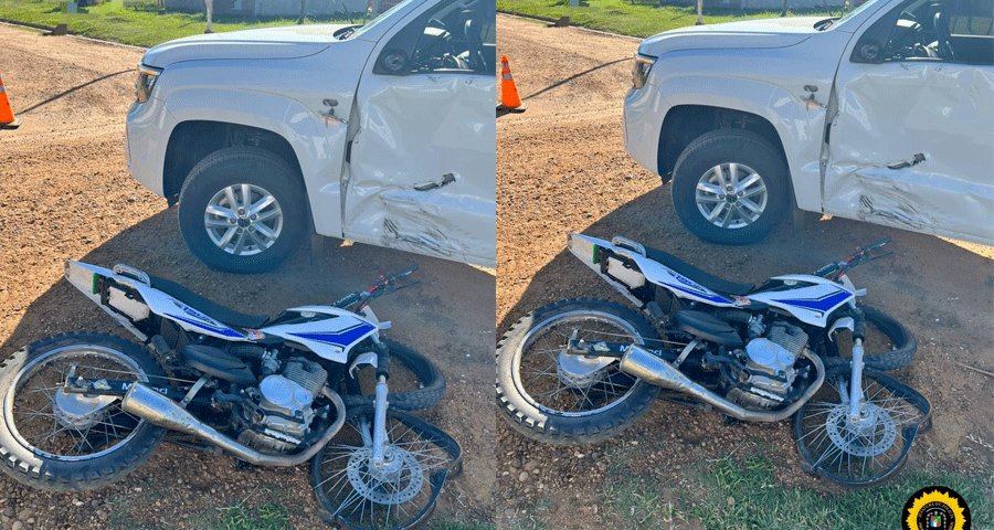 En la tarde de este lunes 2 de marzo, alrededor de las 16:40 horas, se registró un grave accidente de tránsito en la intersección de las calles Arturo Jauretche y Martiniano Leguizamón, en la ciudad de San Salvador. Por causas que aún se intentan establecer, colisionaron una camioneta Volkswagen Amarok y una motocicleta Motomel CX 150.