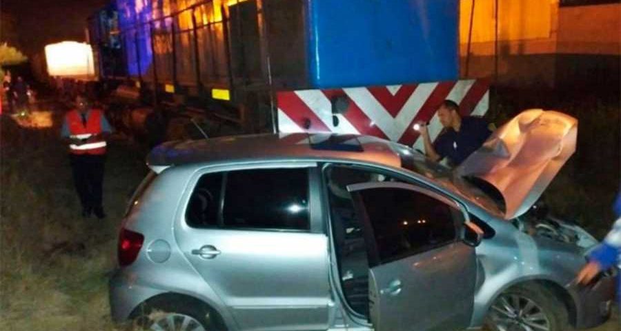 El hecho sucedió alrededor de las 20.30 horas de este martes cuando un convoy de carga atropelló un auto – marca Volkswagen Fox color gris- en la intersección de calles Concejal Veiga y vías del Ferrocarril.