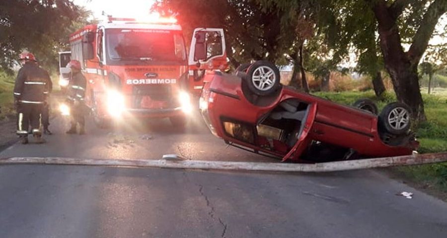 Un grave accidente ocurrió esta mañana en la capital entrerriana, minutos después de las 6, cuando un vehículo VW Gol, chocó contra una columna de alumbrado y volcó sobre la cinta asfáltica.
