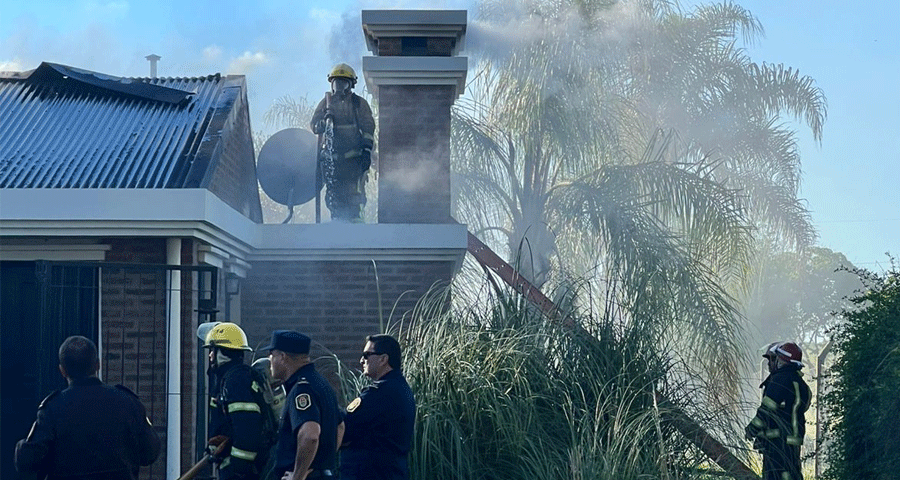 Al llegar, los efectivos visualizaron las llamas en el interior de la casa. El fuego se había iniciado en el área de la churrasquera y se propagó rápidamente hacia el cielorraso de la propiedad. Tras constatar que no había moradores en el inmueble, la policía realizó los primeros trabajos para intentar contener el avance de las llamas.