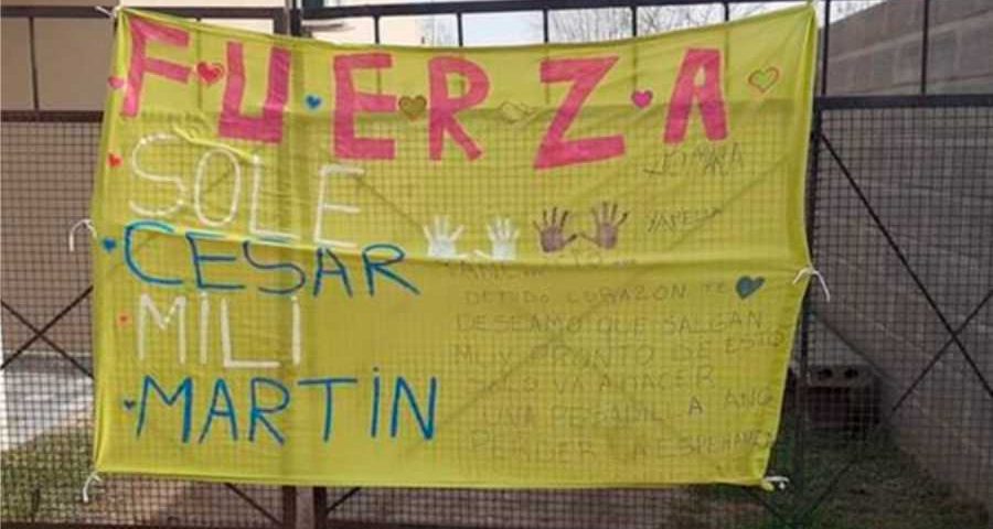 Vecinos colgaron un cartel dándole fuerzas a la familia