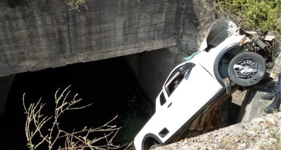 El vuelco ocurrió pasadas las 15 del martes y la camioneta, una Volskwagen Saveiro, quedó colgada de la alcantarilla a siete metros de profundidad.