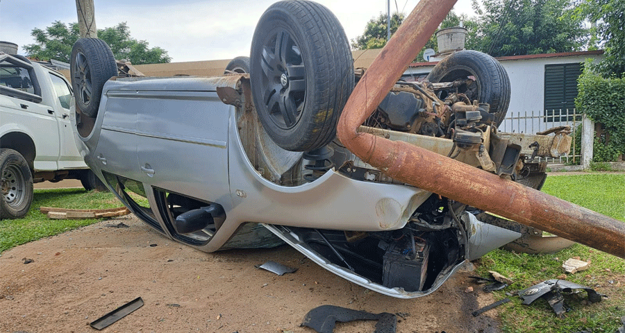 Por causas que aún se investigan, el conductor perdió el dominio del rodado al cruzar J. J. Valle. El vehículo impactó primero con extrema violencia contra una columna del alumbrado público, dejándola completamente destruida. Acto seguido, el automóvil volcó, quedando con las ruedas hacia arriba. En medio del vuelco, terminó golpeando el lateral derecho de una camioneta Ford F-100 que se encontraba estacionada sobre la vereda.